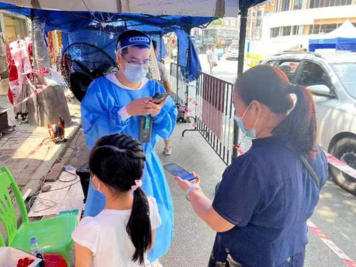 争分夺秒,提前到位。8点30分,10名突击队员准时到达瑞宝街,分配到金碧东、金碧南、和辉、晓港湾4个社区支援。凤阳街为临时增派任务,在收到街道点位安排前,别动队员已提前出发,10点到达现场与街道对接,10点半全部到达敦和、逸景西、和平社区上岗,协助社区开展秩序维护、市民信息登记辅导、核酸检测扫码、现场人员分流控制等志愿服务。