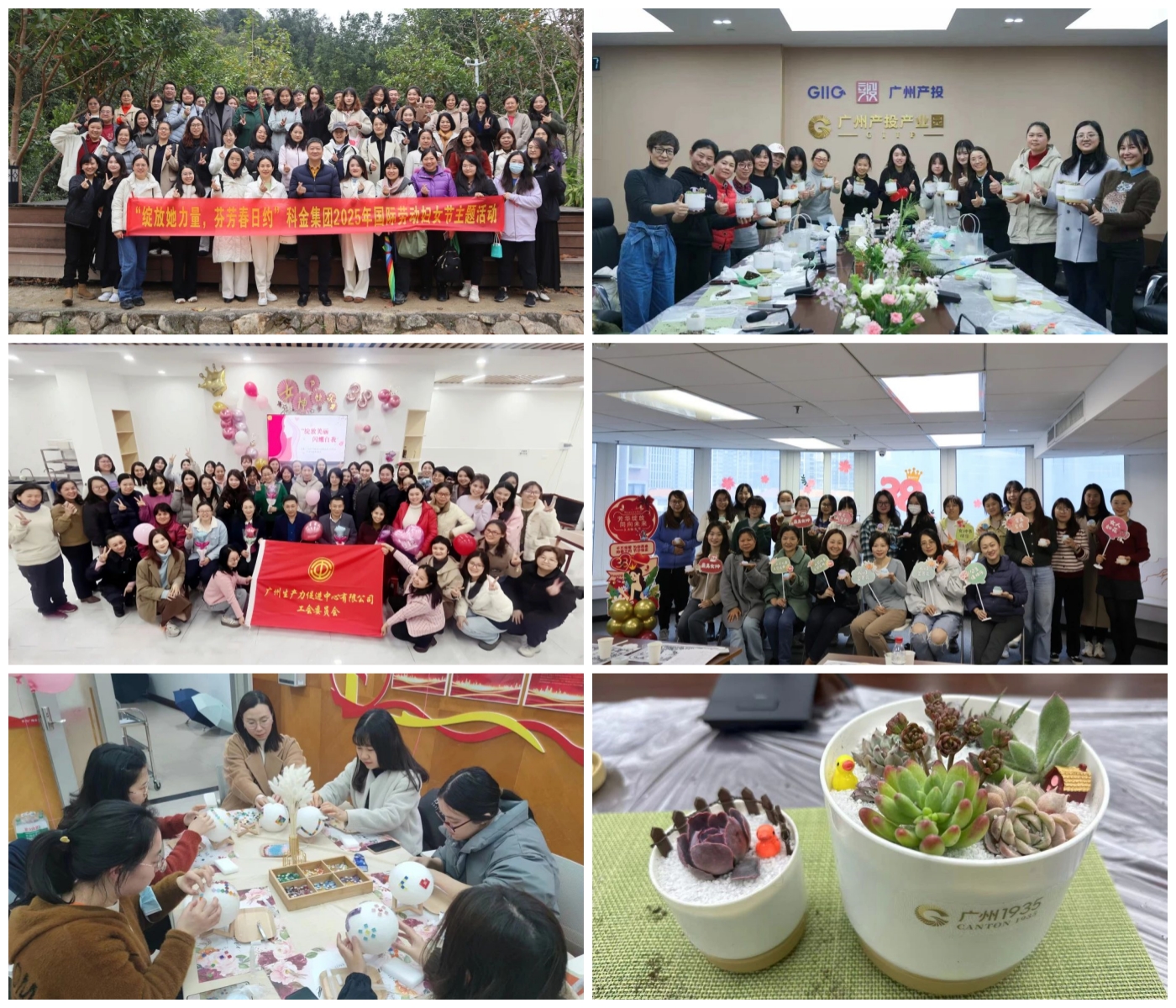 集团工会统筹指导各直属工会“一体化、分层次”精心组织开展庆祝“三八”国际妇女节系列活动。广州科金集团工会开展芳草科普行、体验非遗香道手工制作等活动,让非遗文化走进女职工生活;广州产业园集团工会开展“指尖绿意 绽放芳华”主题多肉手作沙龙活动,丰富广大女职工精神文化生活;生产力促进中心工会联合广州科技服务业协会开展“绽放美丽 闪耀自我”主题庆祝活动,通过才艺展示和互动游戏,展现女职工积极向上、团结友爱的精神风貌;国际工程咨询公司工会策划“香伴·她绽放”芳疗舒压活动,提升女职工幸福感和归属感;水务院公司工会开展“巧手掬月,映耀她光”主题月球灯手作活动,鼓励女职工以巧思点亮创意,在轻松疗愈的创作中感受生活的美好;环科院公司工会带领女职工前往增江画廊,学习优秀女工匠们在水环境、大气治理等领域的先进事迹,激励职工以更加饱满的热情投身工作。