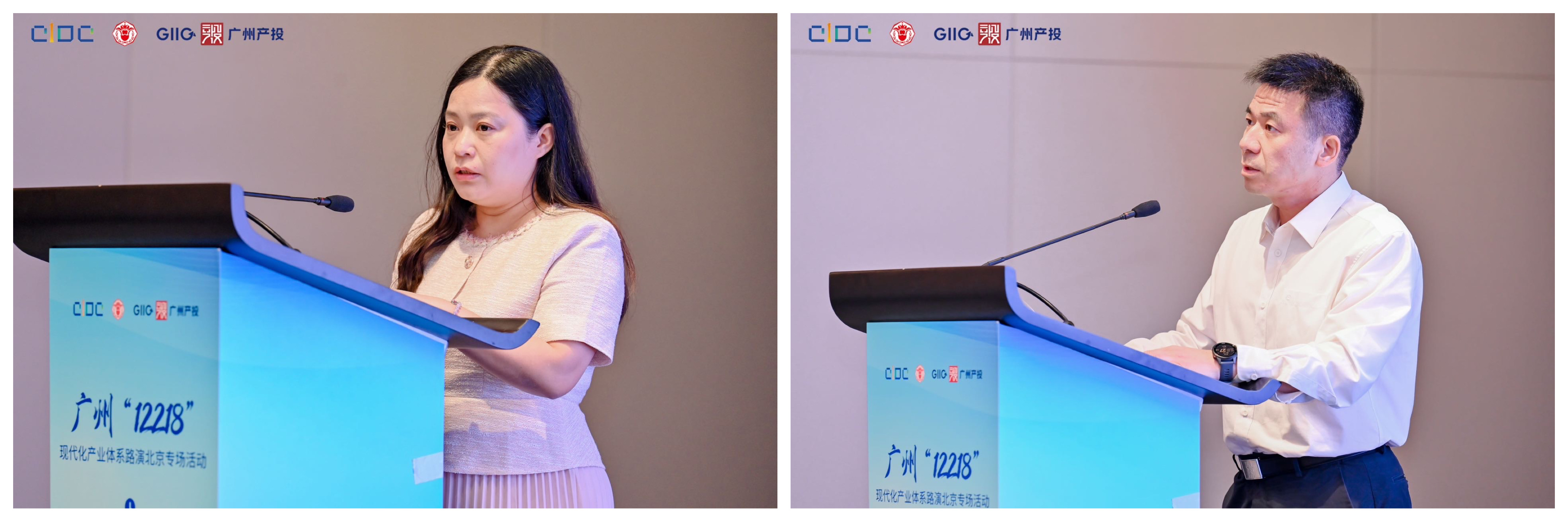 在主题推介环节,市规划与自然资源局产业服务处处长朱倩琼、市工业和信息化局产业园区与生产服务业处盘先荣调研员分别向与会嘉宾介绍了广州市产业空间布局规划和十大特色标杆园区的相关情况。