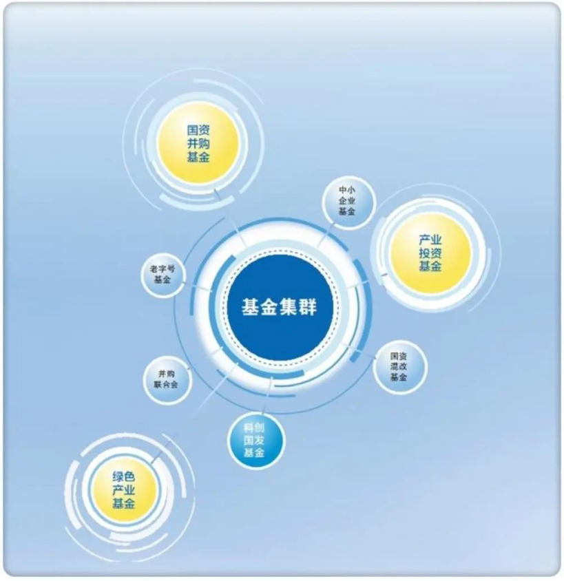 集团目前构建了涵盖产业投资基金、中小企业基金、科创国发基金、绿色产业基金、国资并购基金、国资混改基金和老字号基金等基金群,协助成功收购山河智能、苏交科、南方宇航、佛山通宝等项目,所投广州三孚新科等6家企业成功上市,形成以基金促进投资发展的生态圈。