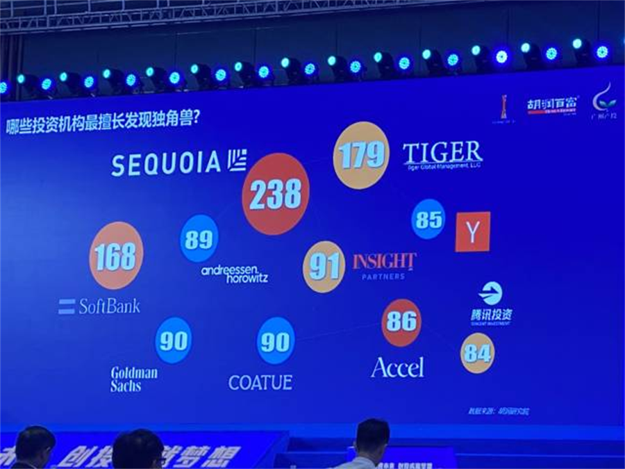 独角兽的发展离不开投资机构的扶持。胡润在现场发布了全球最擅长发现独角兽的投资机构,其中,红杉资本以238家位居第一,老虎资本以179家位居第二,软银集团位居第三。在中国独角兽的投资方面,红杉中国排名第一,中金公司排名第二,而本次大会上与产投集团签约的IDG资本也榜上有名。