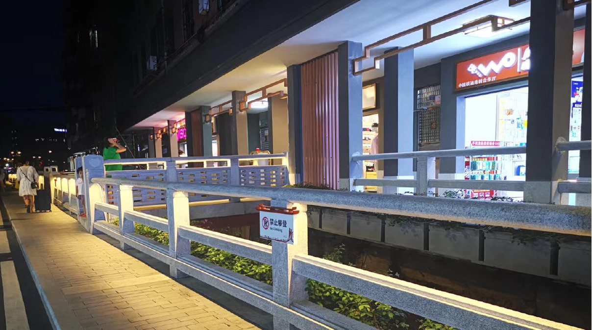 通过揭盖复涌、堤岸加固、 “微拆迁”等措施,实现中支涌 “河畅、堤固、水清、景美”。工程创城中村河道揭盖复涌先例,首创“微拆迁”理念—城中村房屋首层退让部分空间,“一楼一策”改造修复成骑楼商业步行街,并巧妙融合珠村乞巧文化。