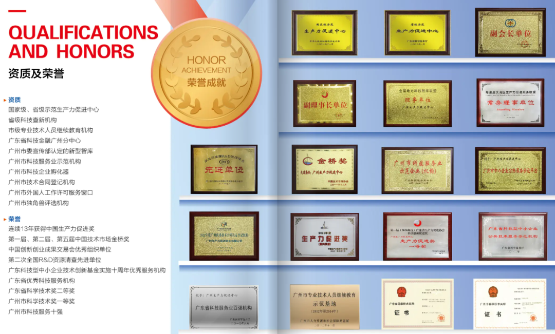 多年来,中心发挥专业优势,整合政策、资本、人才等创新资源,发掘培育了200多家广州“独角兽”系列创新企业,服务对象包括南方电网、南方航空、广州地铁、广汽集团等大型国企业和小鹏汽车等高成长企业。获认定为是国家级示范生产力促进中心、中国智库索引(CTTI)来源智库和广州市新型智库等系列资质荣誉,连续7年发布《广州城市创新指数报告》、“发现广州独角兽创新企业”系列榜单等,出版《科技前沿与未来产业》《争渡—迈向国际顶级创新城市之路》等研究专著和理论文章,享有广泛的社会声誉。