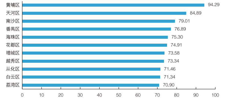 2023年广州各区创新指数综合得分情况