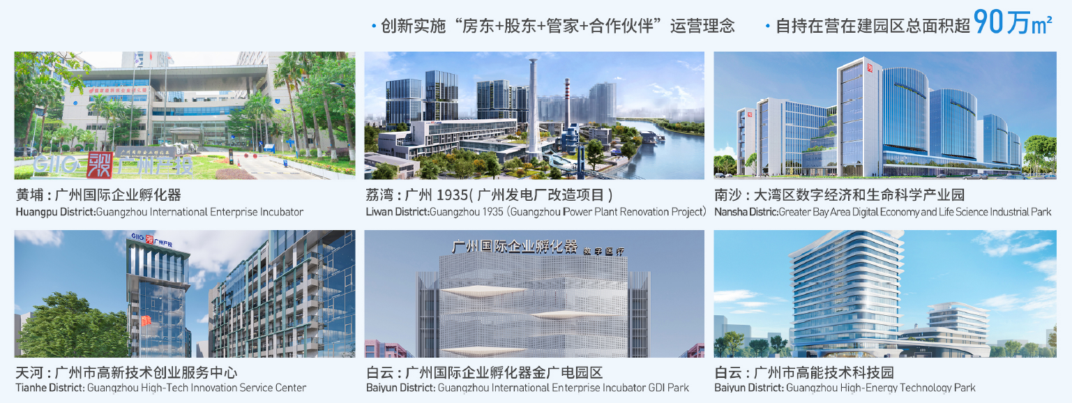 建设运营广州国际企业孵化器、大湾区数字经济和生命科学产业园、广州1935等超90万平方米的产业园区,创新“房东+股东+管家+合作伙伴”服务模式,为科技创新企业和项目提供高品质的发展空间载体,以“耐心资本”产业思维陪伴企业成长壮大,培育发展新质生产力。