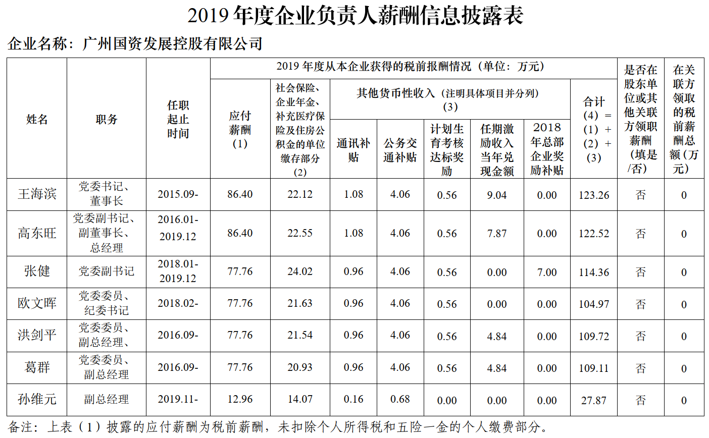 2019年度企业负责人薪酬信息披露及企业工资总额信息披露