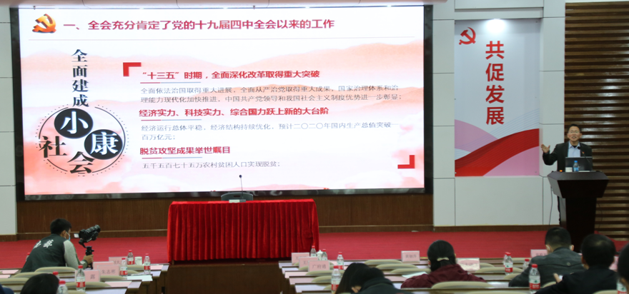为进一步巩固扩大政治共识,启动仪式后,孵化器党支部现场举办了首堂“红联党课”,邀请广东外语外贸大学马克思主义学院院长谢迪斌为园区党员作党的十九届五中全会精神专题宣讲。